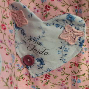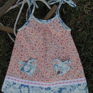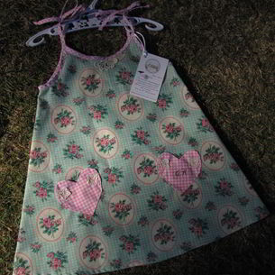 Hand-made using limited edition fabrics and lace detail...our gorgeous A-line Sun Dresses with self-tie straps make the perfect little dress for warm summer days! We personalise your order by embellishing one of the heart shaped pockets with 'Miss' followed by her name or initials.